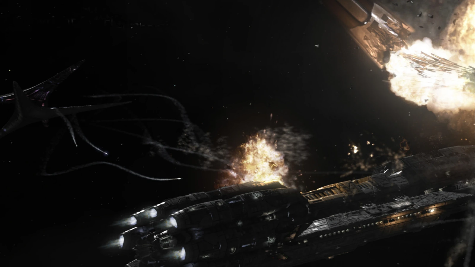 The Battle above Picon and the 'Week of Hell' had taken its toll however. Over one thousand crewmembers had been killed or injured including the ship's Chief Medical Officer, Dr Farrah. Just as serious was the loss of many of the Battlestar's air wing. The ship itself had taken some heavy damage but its armoured hull was intact however its firepower had been significantly decreased.